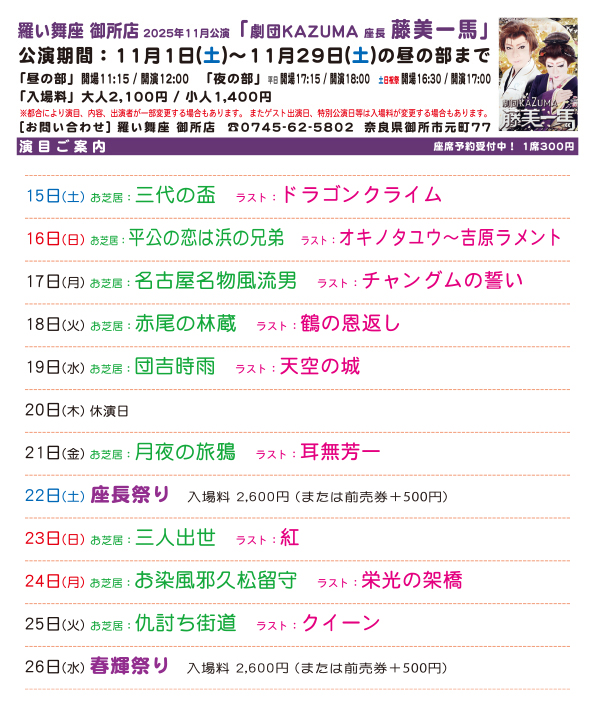 ● 羅い舞座グループ 弁天座 2025年11月公演●