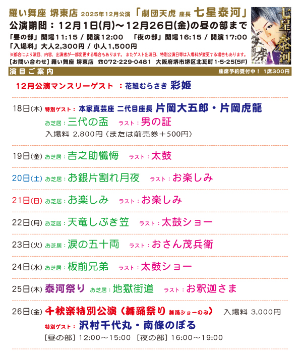 ● 羅い舞座 堺東店 2025年12月公演
