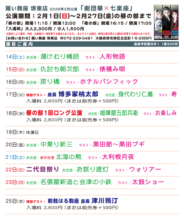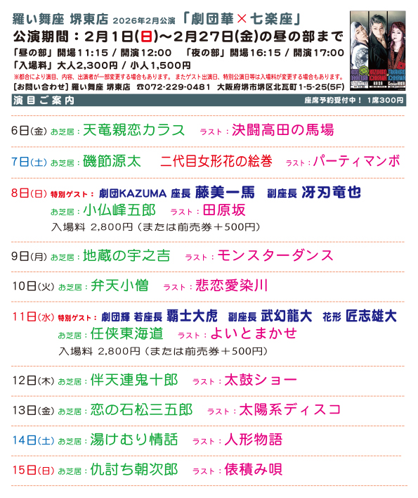 ● 羅い舞座 堺東店 2026年2月公演