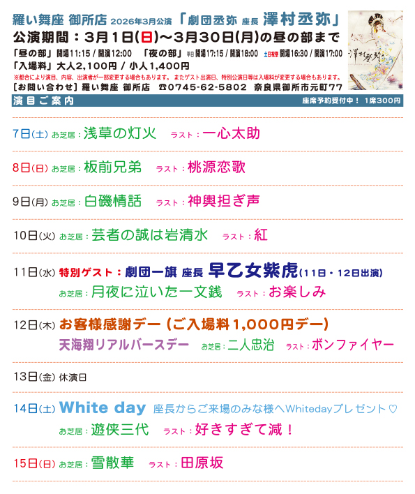 ● 羅い舞座 御所店 2026年3月公演●