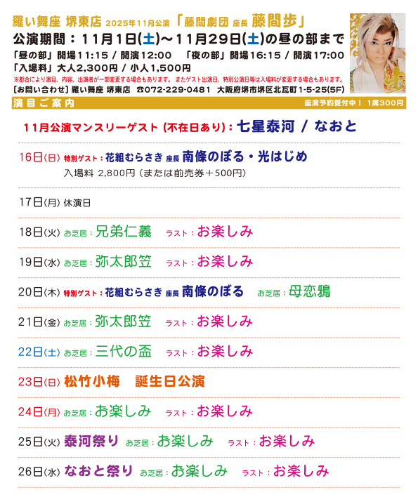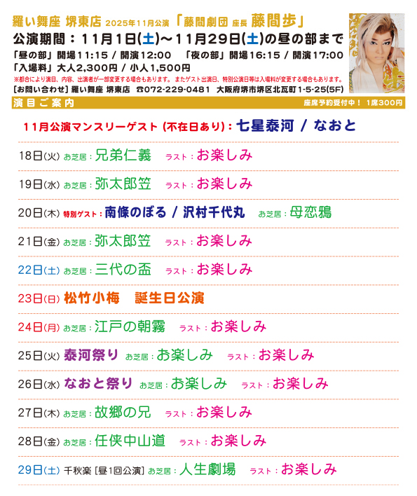 ● 羅い舞座 堺駅前店 2025年11月公演●
