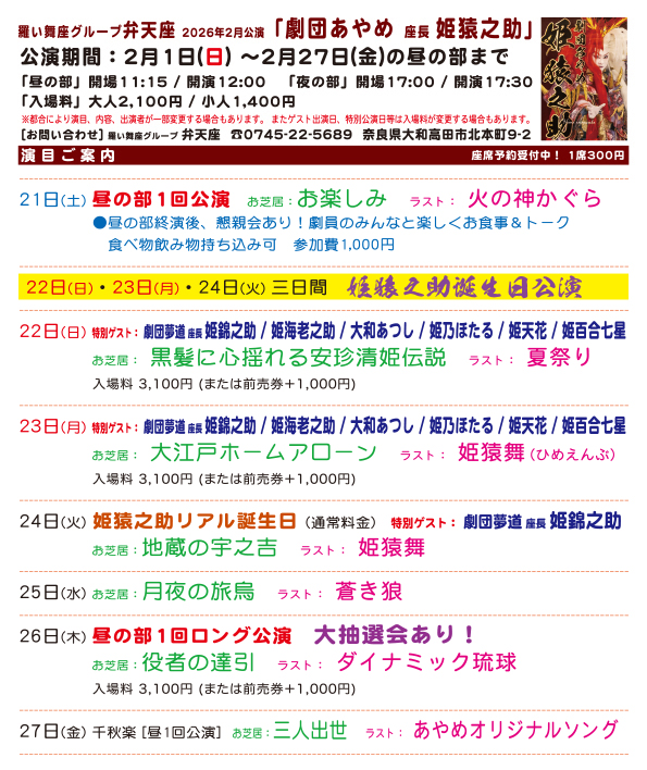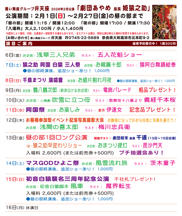 ● 羅い舞座グループ 弁天座 2026年2月公演●