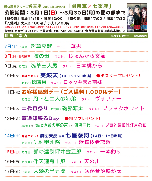 羅い舞座グループ 弁天座 2026年3月公演