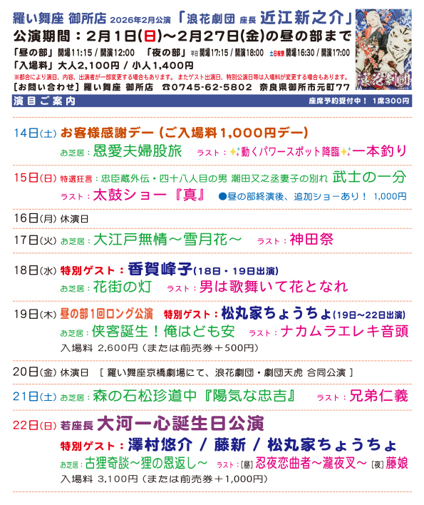 ● 羅い舞座 御所店 2026年2月公演●