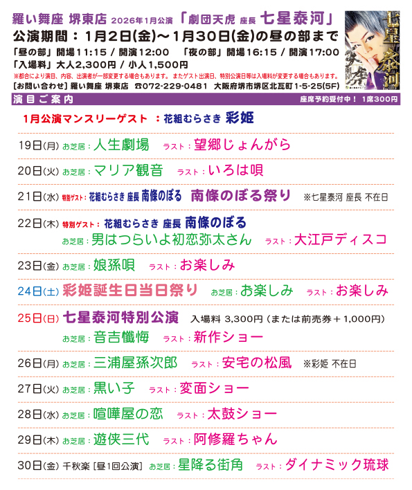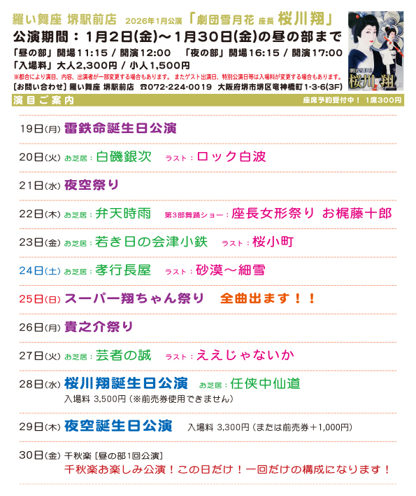 ● 羅い舞座 堺駅前店 2026年1月公演●