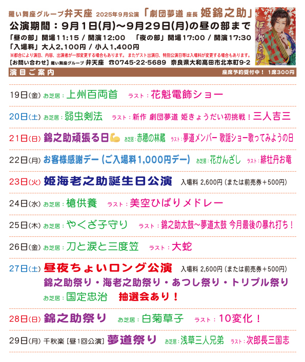 ● 羅い舞座グループ 弁天座 2025年9月公演●
