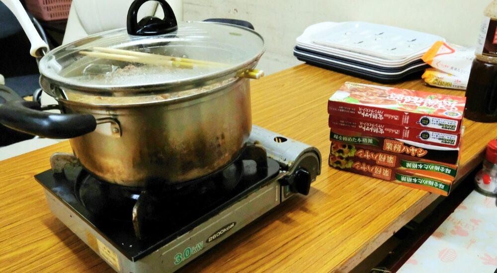 4階の楽屋へ行くと、今日のまかないの準備が。