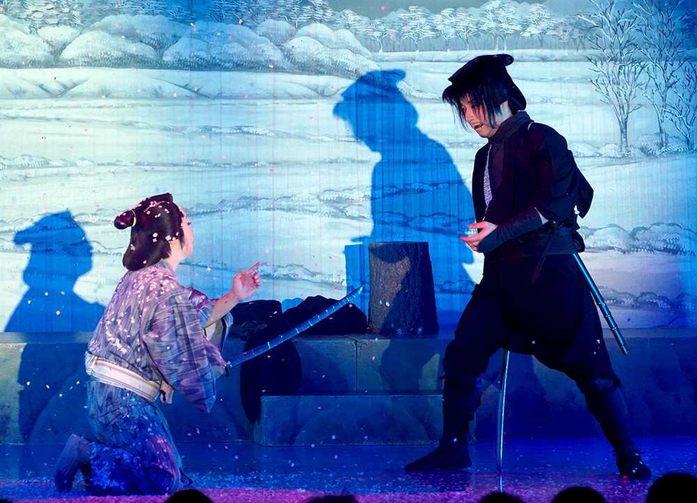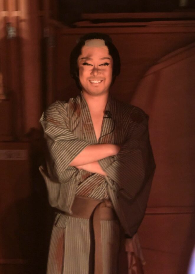 たかひろ座長の影アナウンスでお芝居「遊侠三代」開演です!