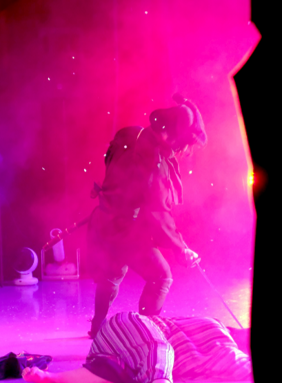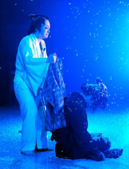お芝居が終わり、すぐに紙吹雪の片づけが始まります。