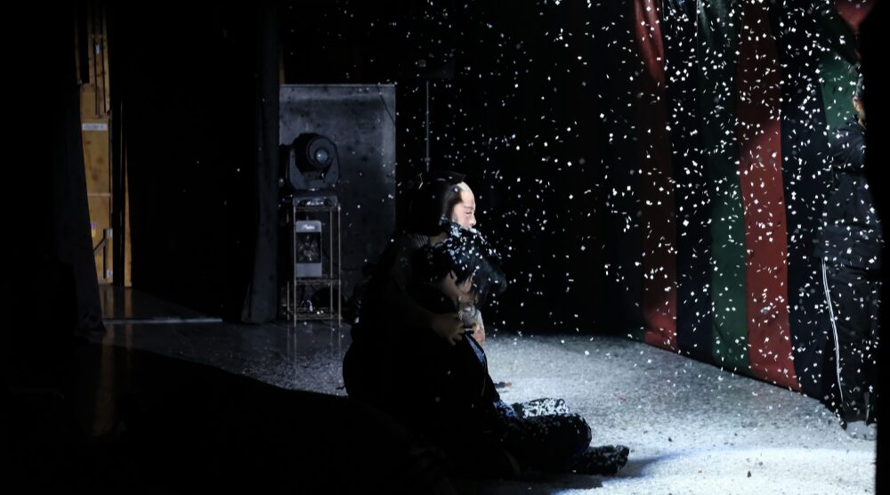 舞台へ行くと、今日のお芝居で使われる紙吹雪の準備が。