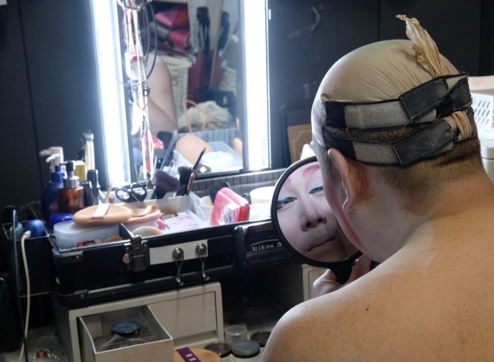 たかひろ座長のお化粧前。