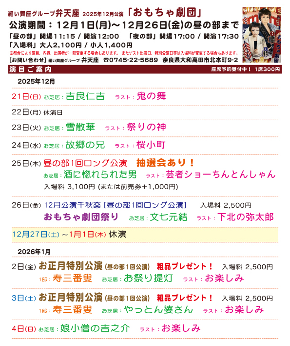 ● 羅い舞座グループ 弁天座 2025年12月公演●