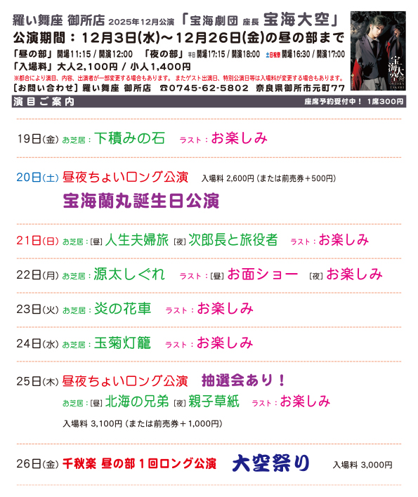 ● 羅い舞座 御所店 2025年12月公演●