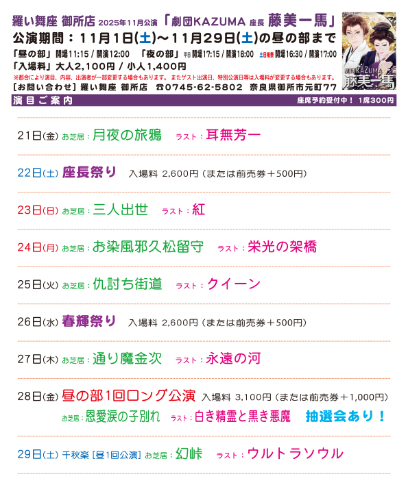 ● 羅い舞座グループ 弁天座 2025年11月公演●