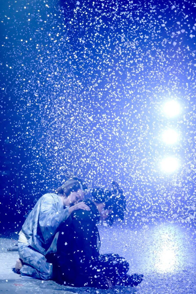 お芝居が終わり、すぐに紙吹雪の片づけが始まります。