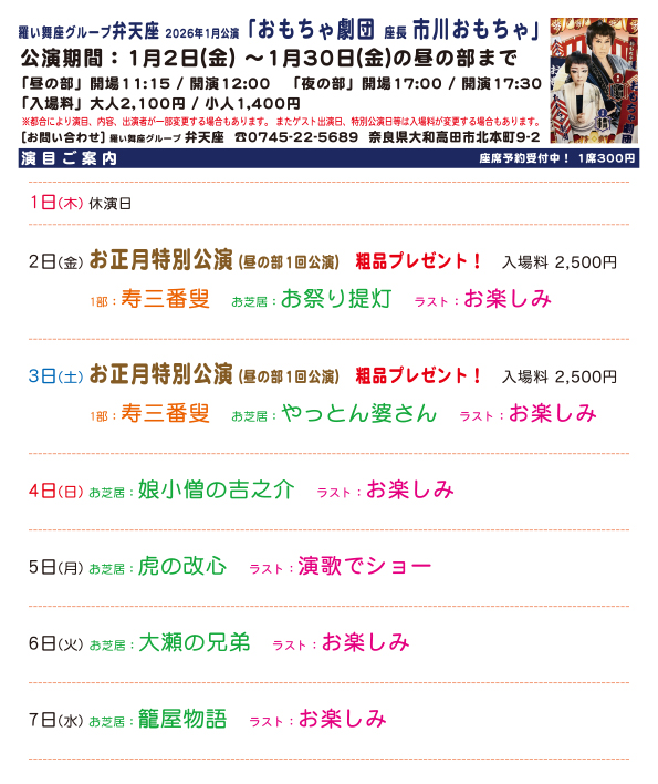 ● 羅い舞座グループ 弁天座 2026年1月公演●