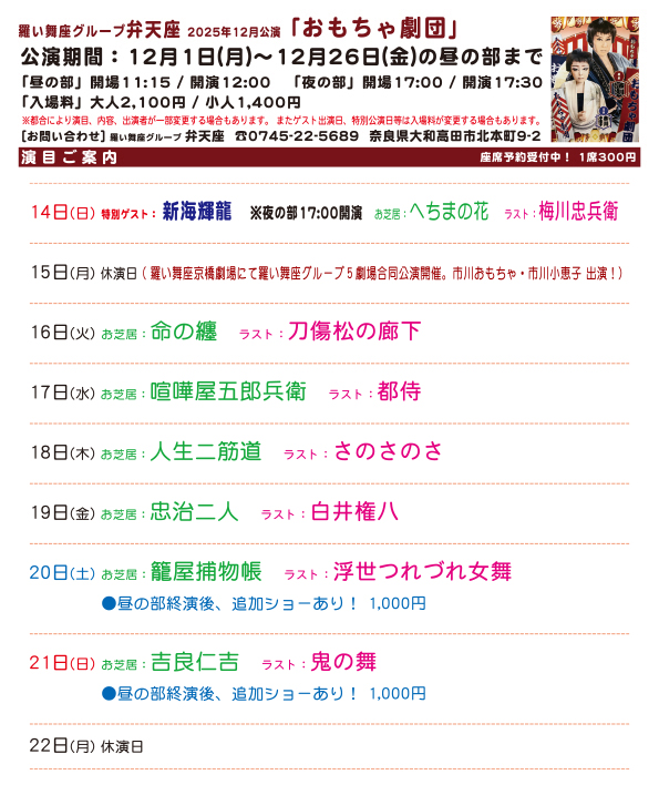 ● 羅い舞座グループ 弁天座 2025年12月公演●