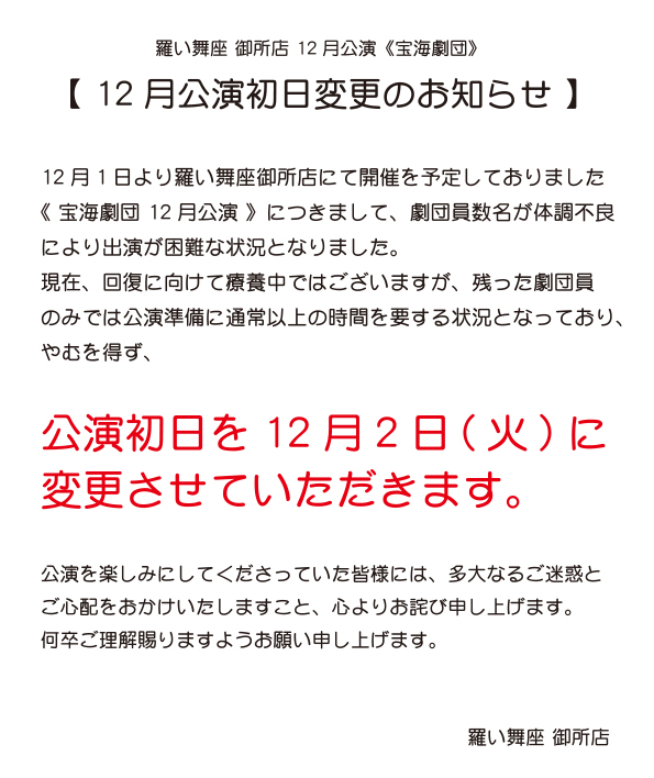 ※都合により演目、内容、出演者が一部変更する場合もあります。