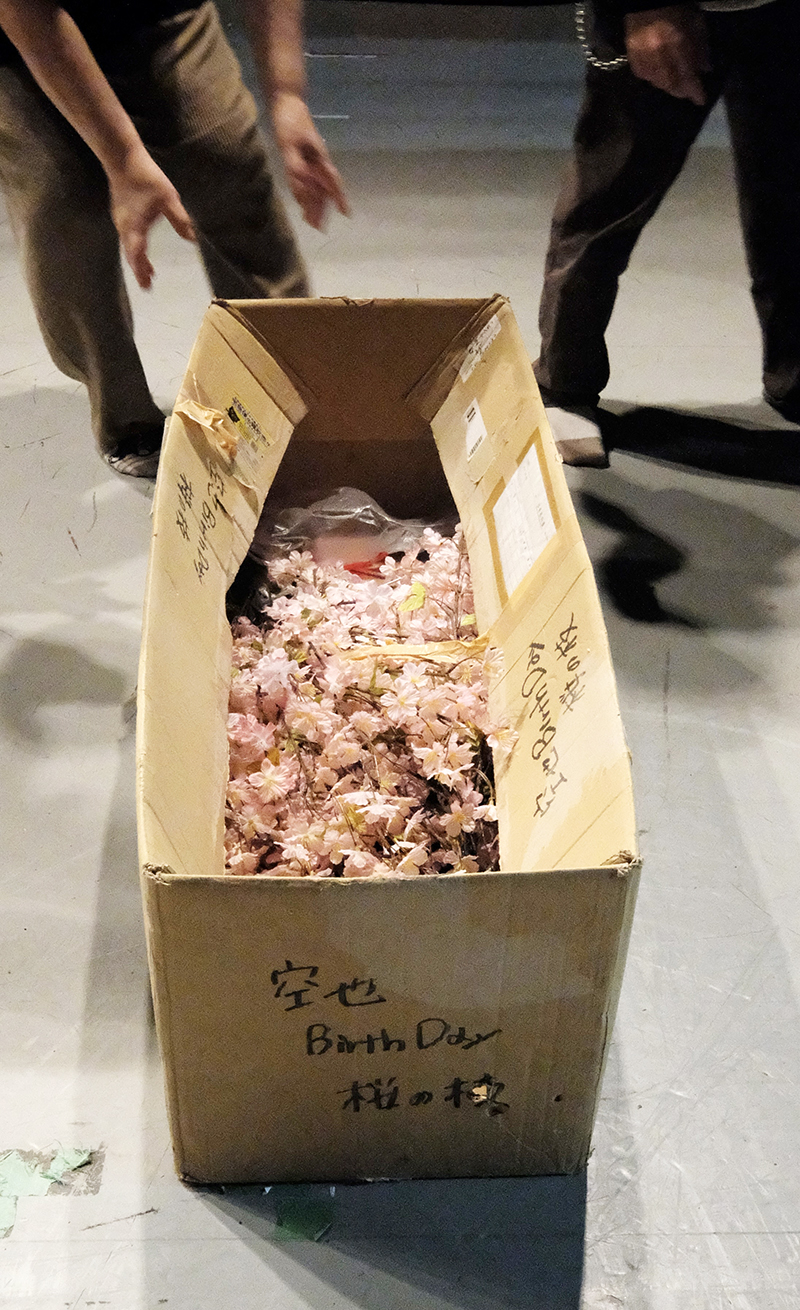 稽古をしている傍には「空也BirthDay」と書かれた段ボールが。