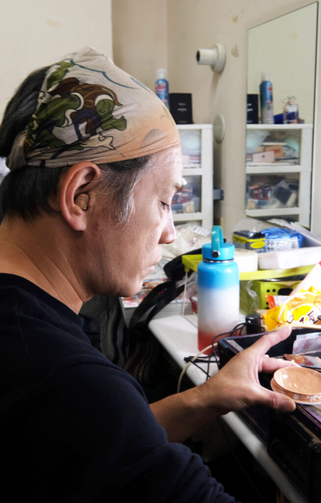 別の楽屋には園長の宝海竜也(たかみ たつや)さんがお化粧中。