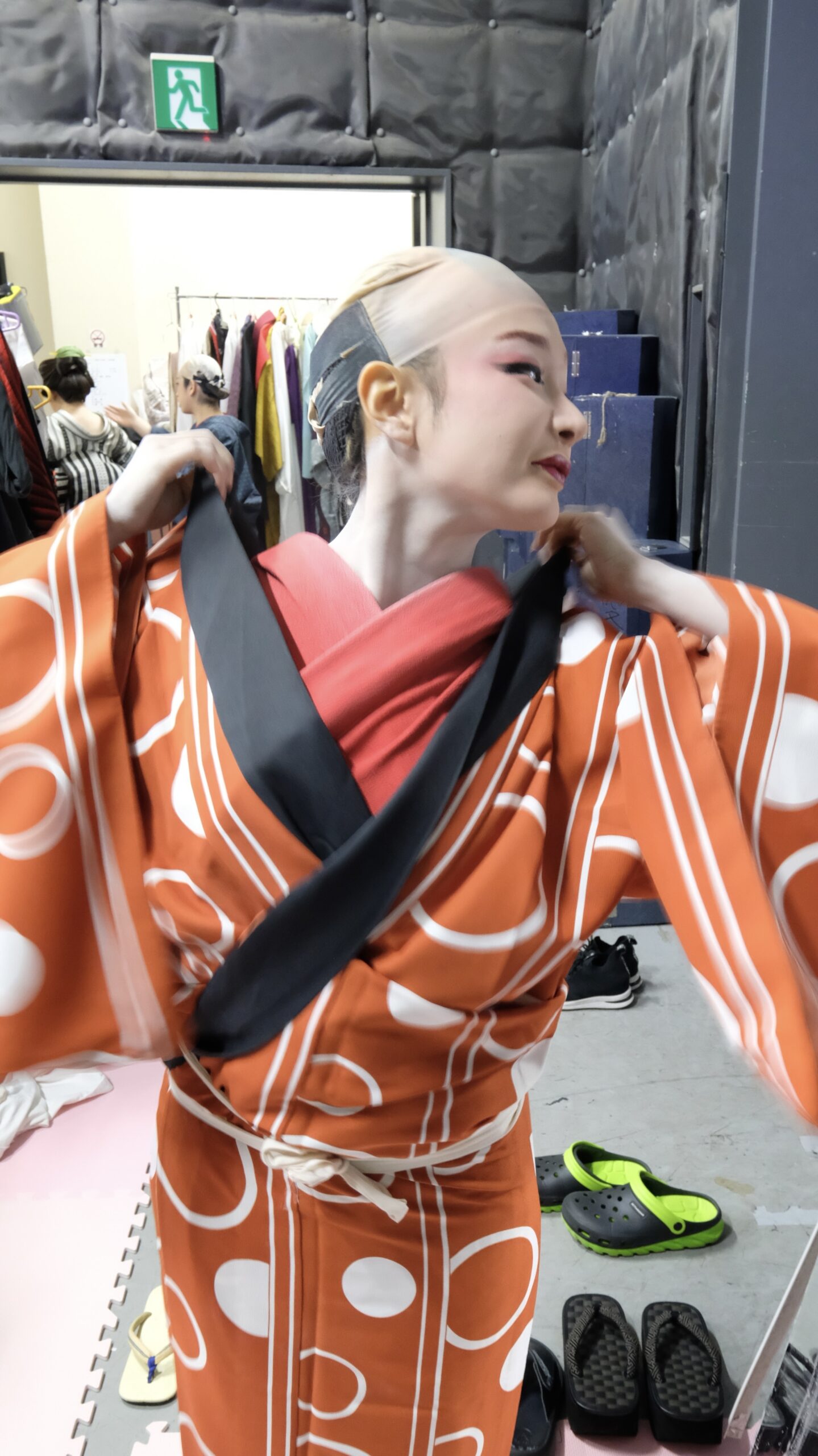 群舞が終わると歌之助くんはこの後すぐにメインの曲が入っているため急いで着付け。