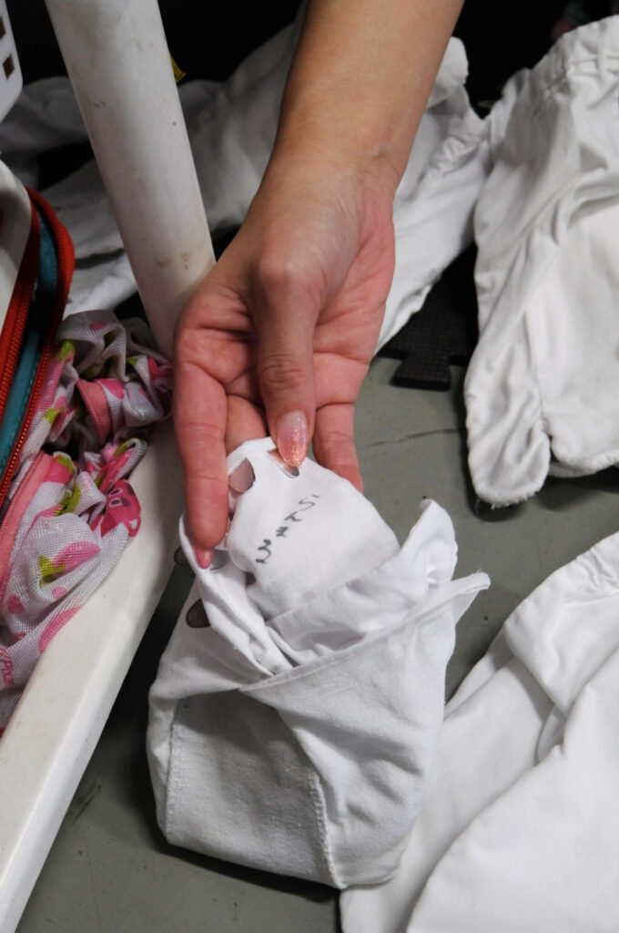 サイズが全員バラバラなので、わかりやすいように内側に名前を書いています。