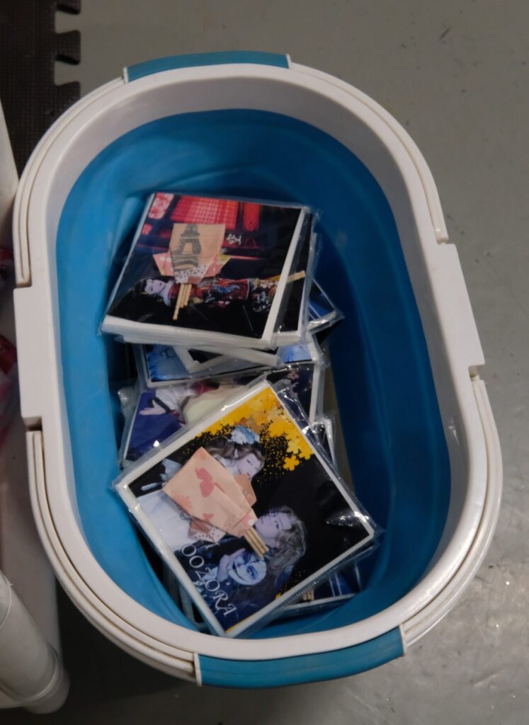 次の群舞に向けて隙間時間にみんなの扇を準備する蘭丸さん