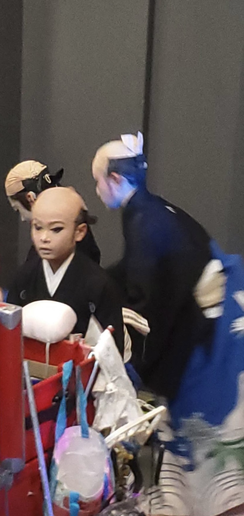 舞台袖では次出番の勘太郎くんが座って座長の舞踊を正座して見ていました。