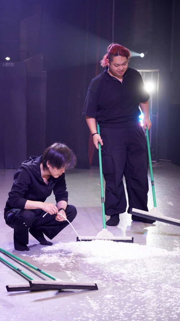 今回の舞台で使う紙吹雪を仕込んでいました。