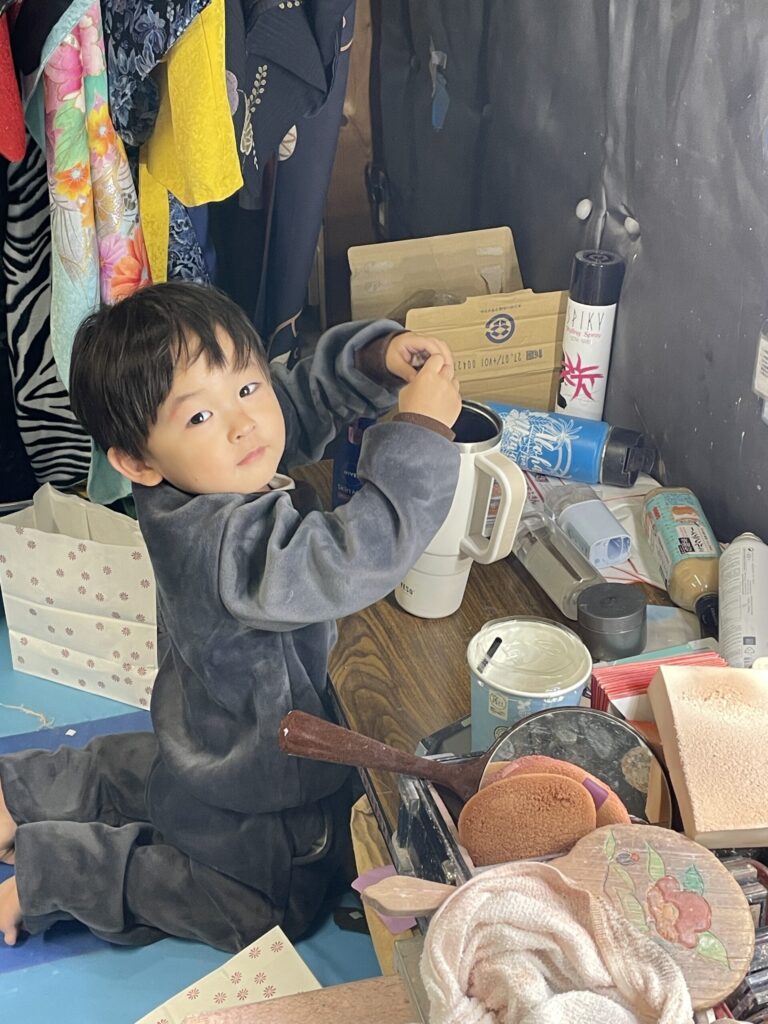 お芝居で使われた着物や帯を慣れた手つきでテキパキと畳んでいく小空くんにもびっくり!