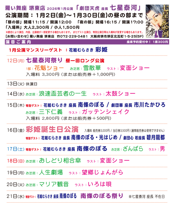 羅い舞座 堺東店 2026年1月公演